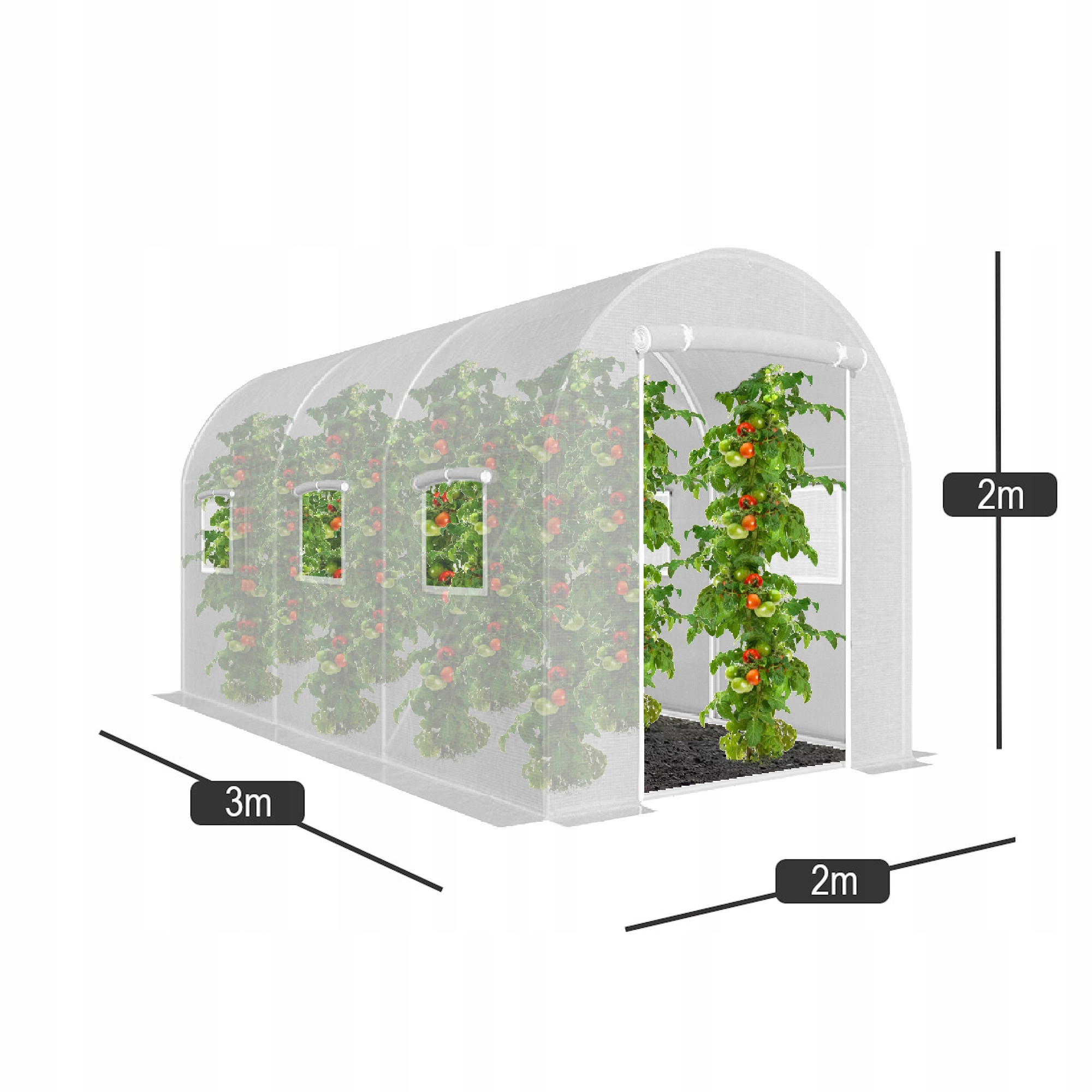 Окна, открывающиеся с обеих сторон, обеспечивают достаточный приток воздуха, регулируют температуру, количество проникающего света и влажность. Они обеспечиваютадаптацию к потребностям данной культуры, например, огурцов, капусты, томатов, фасоли и т.д.