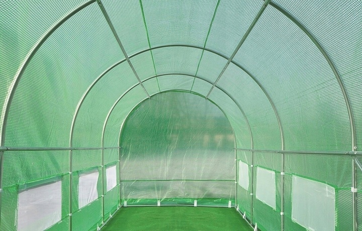В теплице достаточно места для выращивания различных овощей. Ваши растения будут защищены от дождя, ветра, града, яркого солнечного света и повреждений птиц. Теплица оснащена морозостойкой пленочной сеткой и металлическим оцинкованным каркасом. и 3 боковых окна с москитными сетками обеспечивают достаточную вентиляцию.