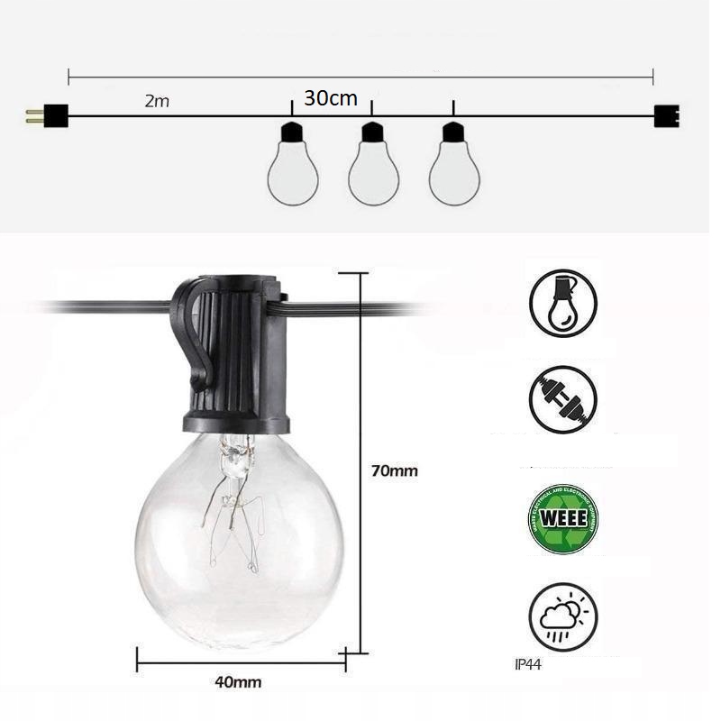 Гирлянда устойчива к неблагоприятному воздействию погодных условий, в том числе к воде и влаге. Водонепроницаемость изделия составляет IP44. Благодаря этой функции вы также можете использовать светильники на открытом воздухе. Как в саду, так и на балконе или террасе.