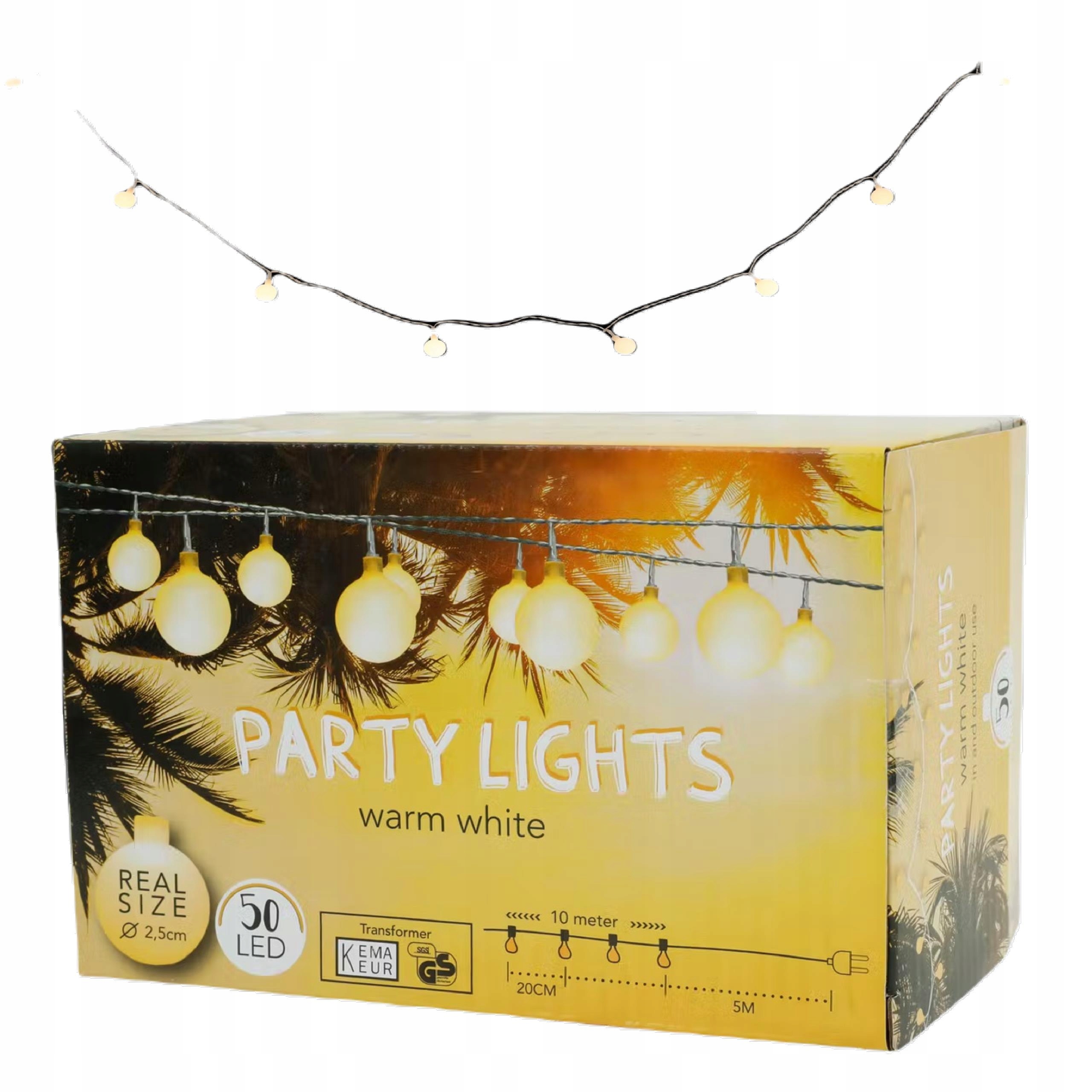 Садовая гирлянда 50 шт. Большие светодиодные шары Теплый белый 1650 см. Блок питания 220 В.