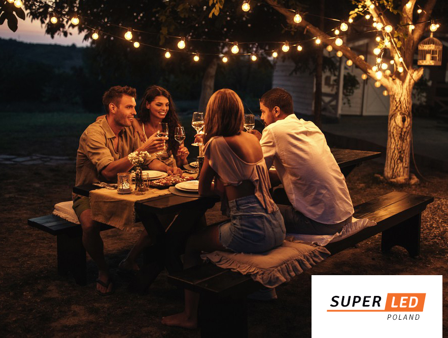 Садовая гирлянда SuperLED Giardi отлично работает как во время мероприятий на свежем воздухе, так и каждый день, создавая идеальную атмосферу для отдыха.
