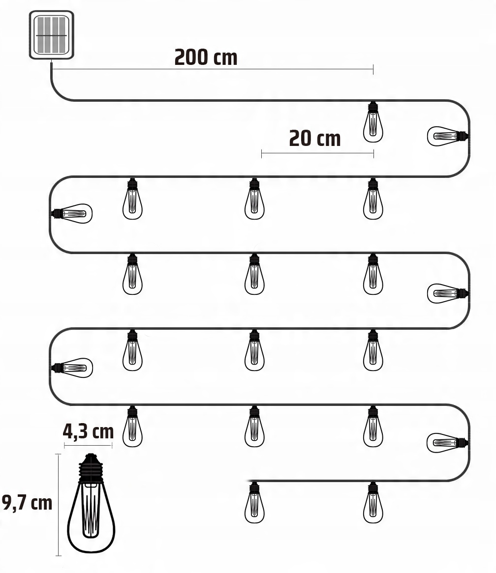 САДОВА ГІРЛЯНДА СОНЯЧНА ЛАМПА 20LED ВЕЛИКІ ЛАМПОЧКИ