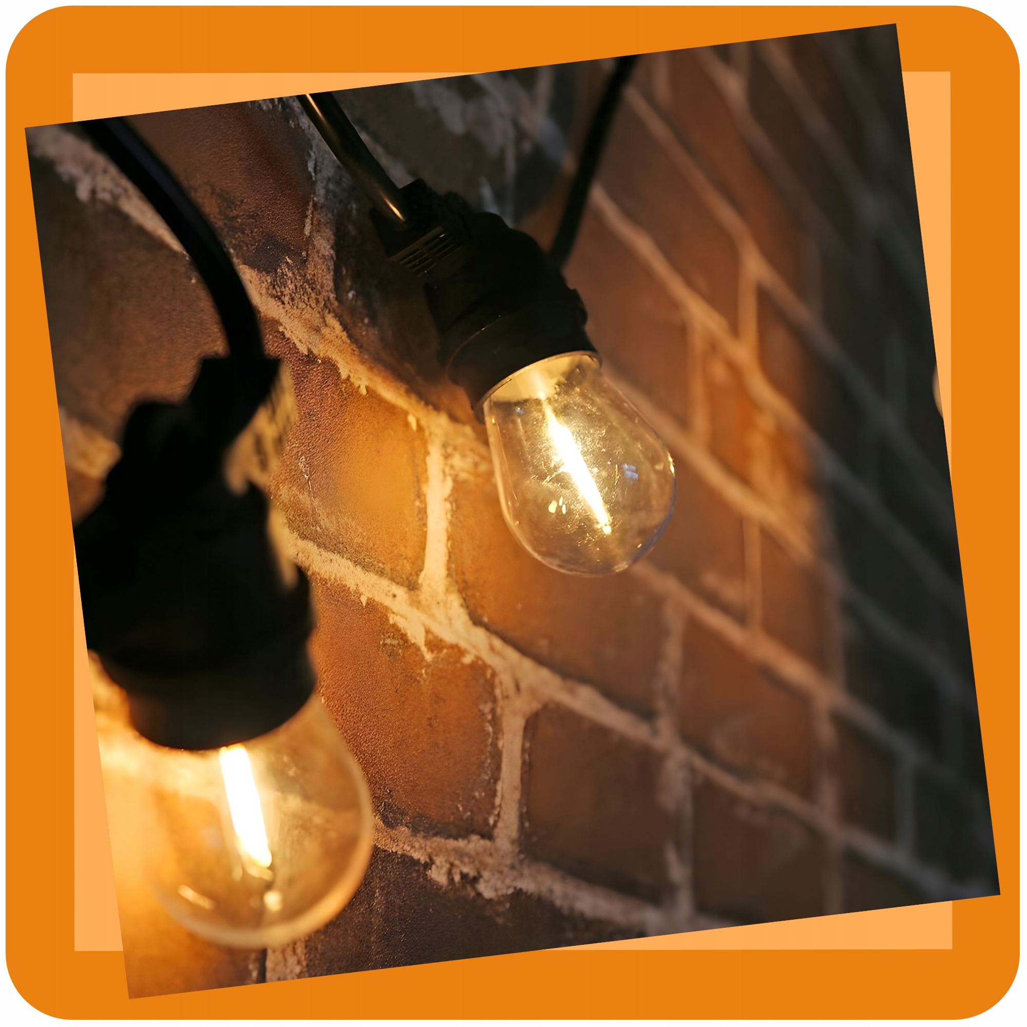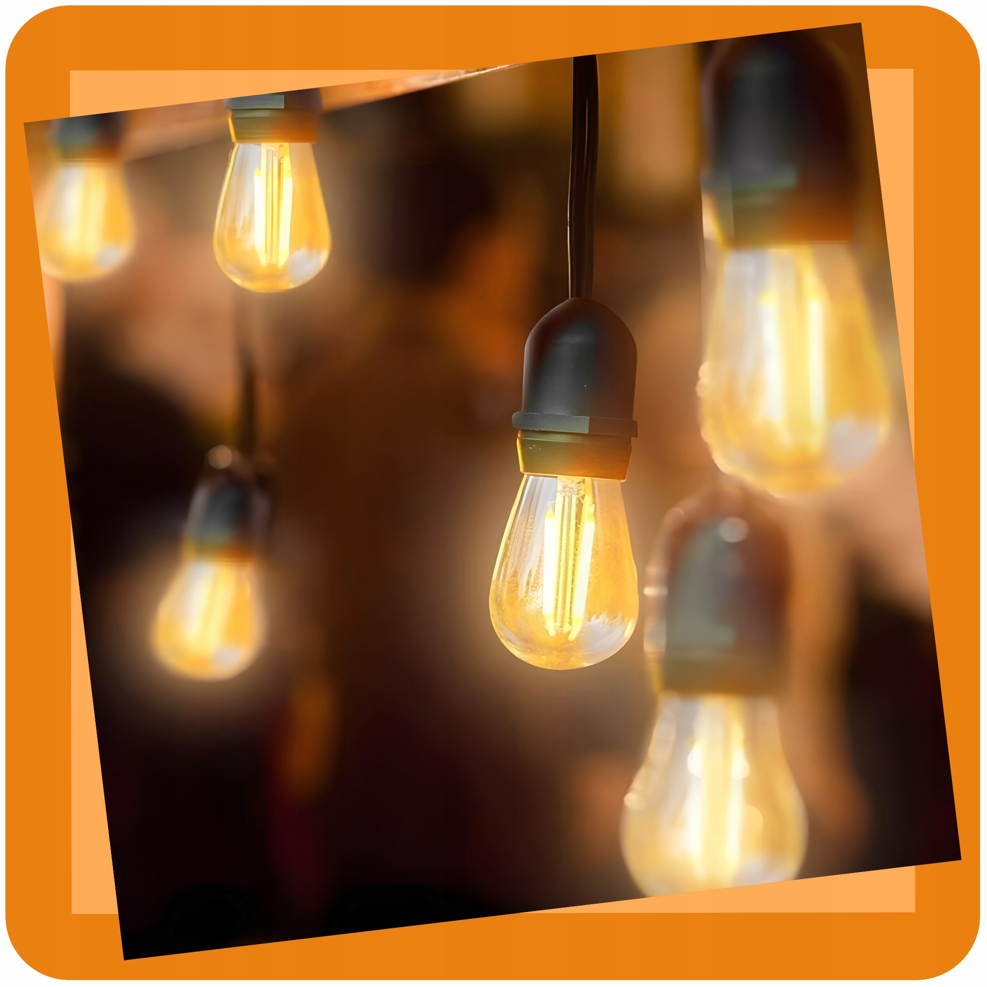 ✔️ Садовая гирлянда длиной 20 м с 20 цоколями для лампочек Е27 (теплые лампочки в комплекте).