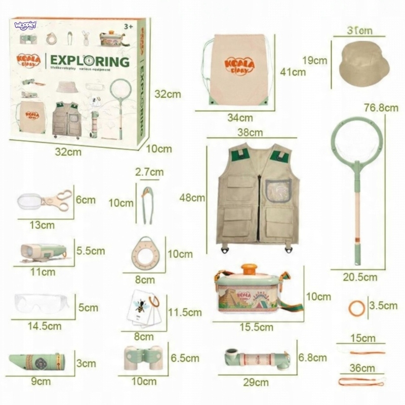 - Откройте для себя увлекательный мир природы с набором небольшого исследователя - незаменимый набор для молодых исследователей, которые хотят исследовать секреты природы. Жилет, шляпа, бинокль, насекомые, фонарик с компасом и многие другие аксессуары позволят вашему ребенку стать настоящим исследователем. Продукт не только развивает моторные навыки и любопытство, но и поощряет узнать о мире насекомых и растений. Набор включает в себя все необходимое для захватывающих экспедиций до свежего воздуха. Откройте для себя увлекательный мир природы с небольшим исследователем!