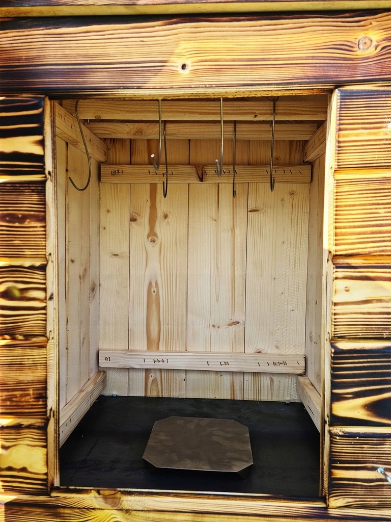 Купленная на этом аукционе коптильня с бесплатной пропиткой древесины методом обжига.