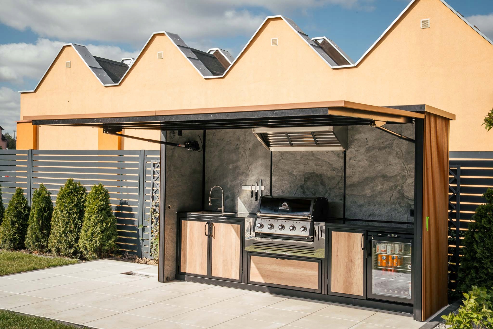 Познакомьтесь с GardenBOX, являющимся предметом аукциона — современной, полностью оборудованной садовой кухней, которая преобразит вашу зону отдыха на свежем воздухе. Это не просто гриль – это комплексная система для приготовления, хранения, охлаждения и подачи блюд в саду, на террасе или в помещениях для проведения мероприятий. Изготовлен из материалов высочайшего качества и разработан с вниманием к эстетике, эргономике и долговечности.