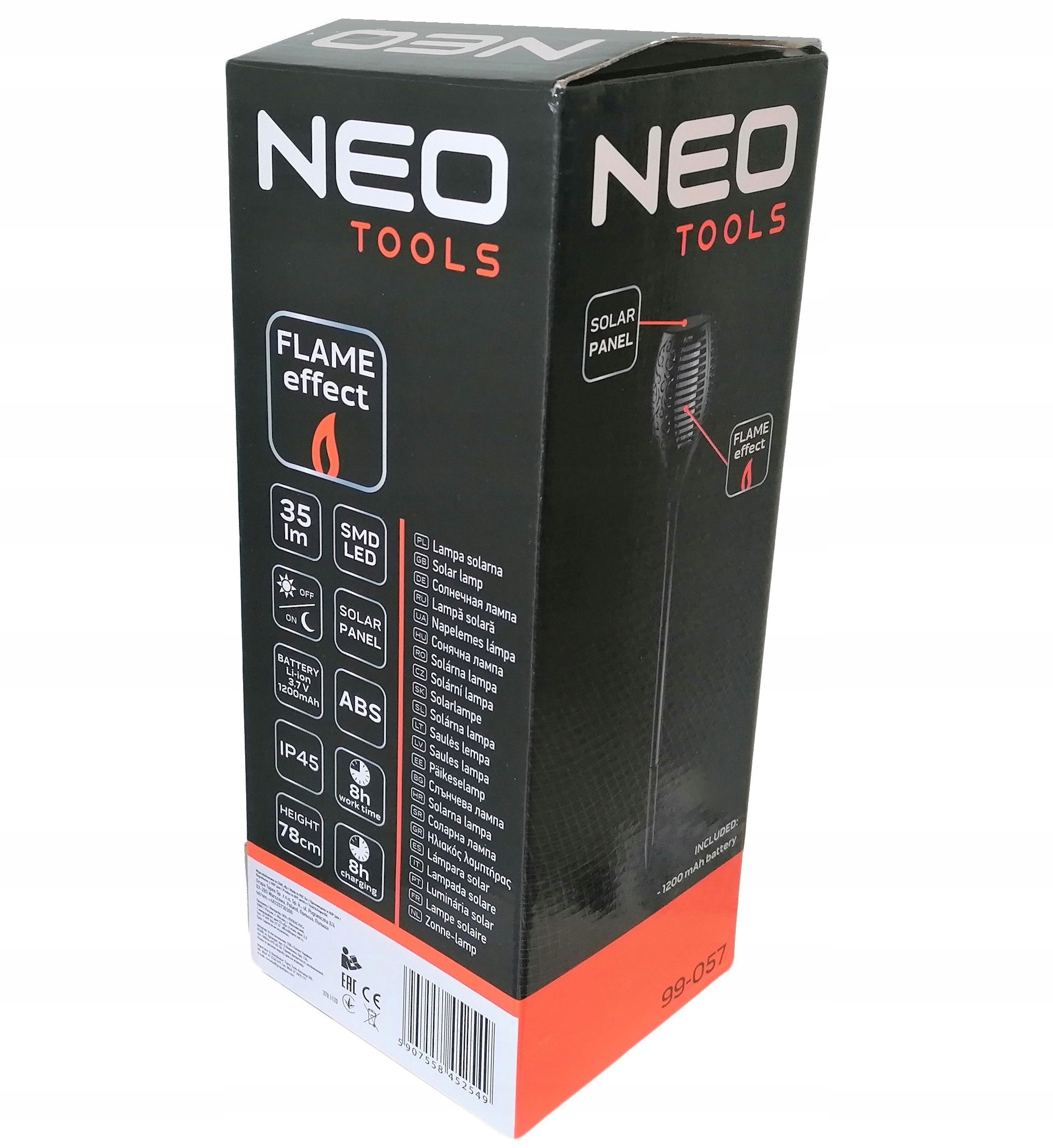 Солнечная садовая лампа, кованая Neo (ссылка 99-057) с эффектом пламени оснащена светодиодами SMD с емкостью 1 Вт 1 в и световом потоке 35.