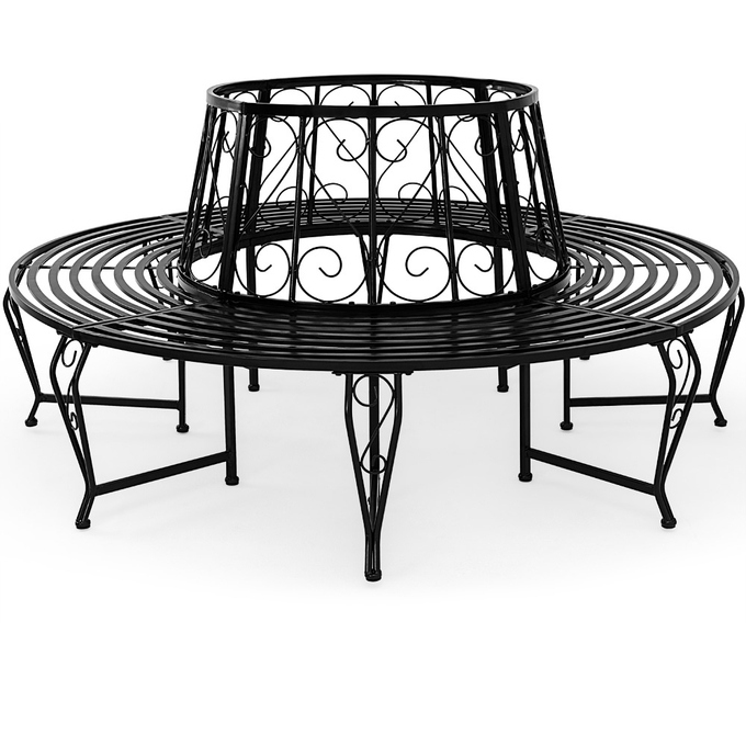 Большая круглая металлическая скамейка, которую можно разместить вокруг дерева. Декоративная металлическая круглая скамейка диаметром 160 см украсит ваш сад.