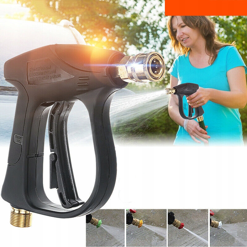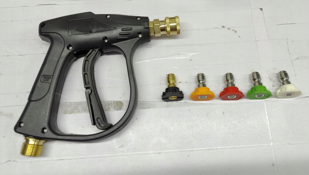 Пистолет для мойки высокого давления имеет резьба М22-14 и выход 1/4" с быстроразъемным разъемом. Можно быстро установить на краскопульт.