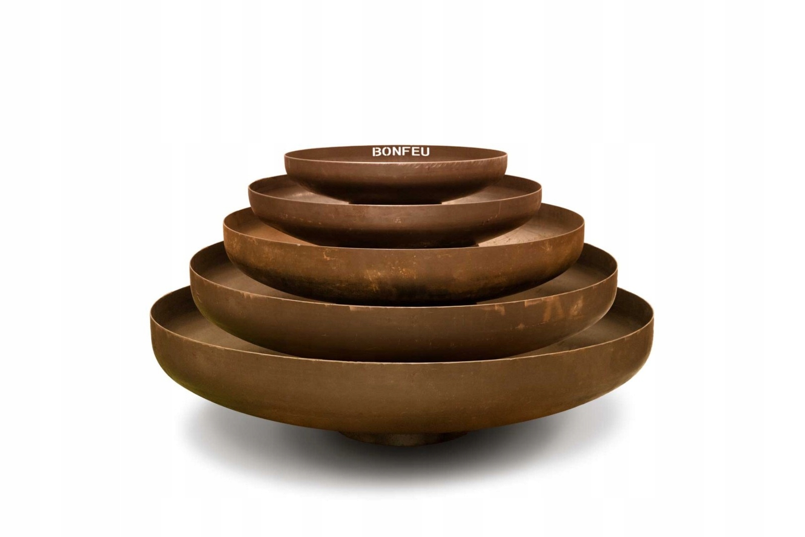 BonFeu BonBowl изготовлен из высококачественной кортеновской стали толщиной 3 мм. Кортен – металлический сплав, состоящий из железа с добавлением меди, фосфора, кремния, никеля и хрома, устойчивый к погодным условиям. Ржавое, очень плотное оксидное покрытие защищает более глубокие слои материала от кислорода, что существенно замедляет процесс окисления, хотя в местах скопления воды в углублениях может прогрессировать коррозия.