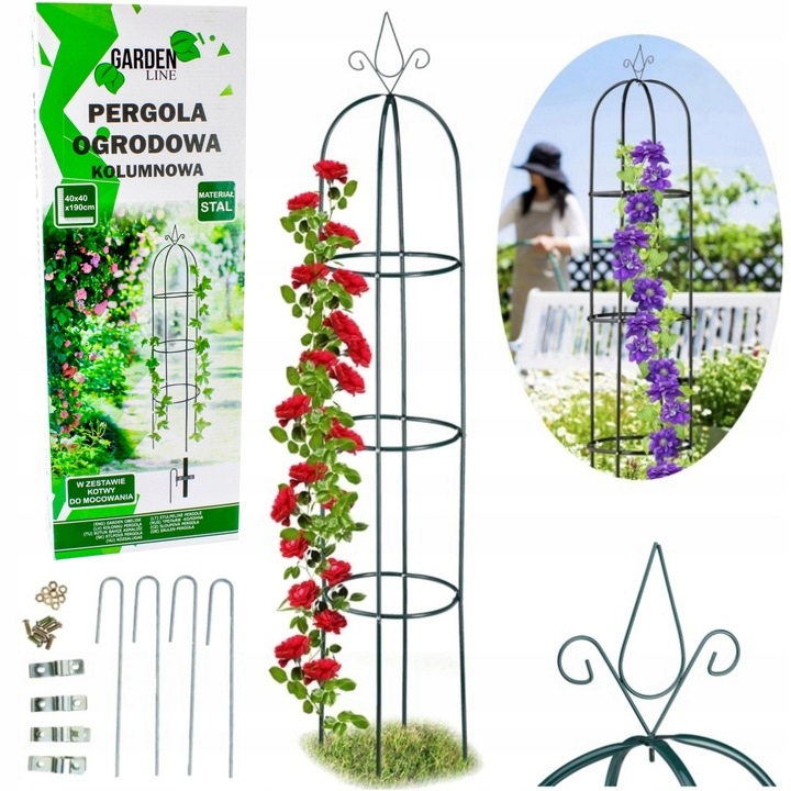 САДОВА ПЕРГОЛА КОЛОНА ДЛЯ ТРОЯНД ПЛЕТИСТИХ КВІТІВ + АНКЕРИ 190 см