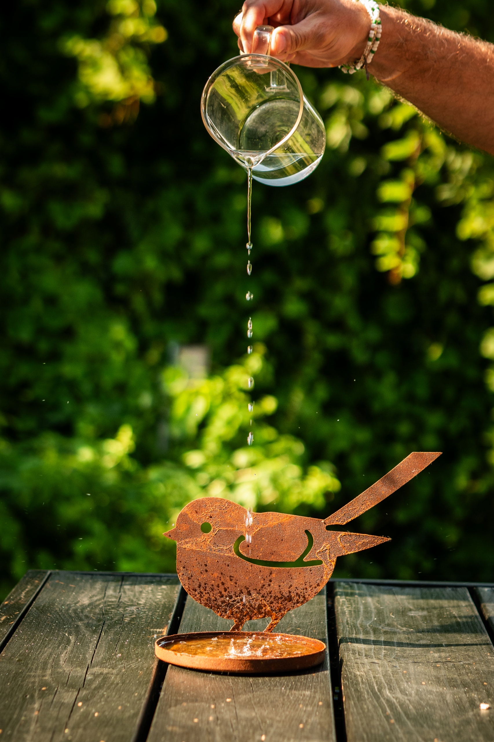 Поилка для птиц стальная с эффектом кортена, Ржавый