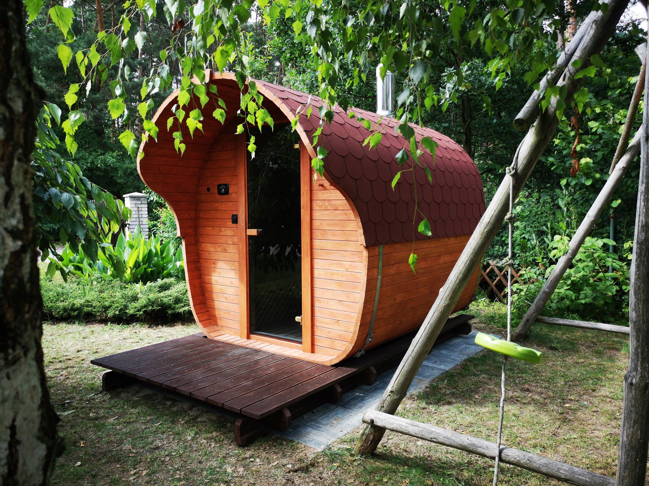 Комплексная сауна из скандинавской ели, импортированной из Швеции. Сауна толщиной 42-44 мм прекрасно сохраняет высокую температуру в сауне даже при минусовых температурах. Сауна имеет две ленты из нержавеющей стали шириной 50 мм. Крыша покрыта черепицей темно-графитового, коричневого, красного или зеленого цвета.