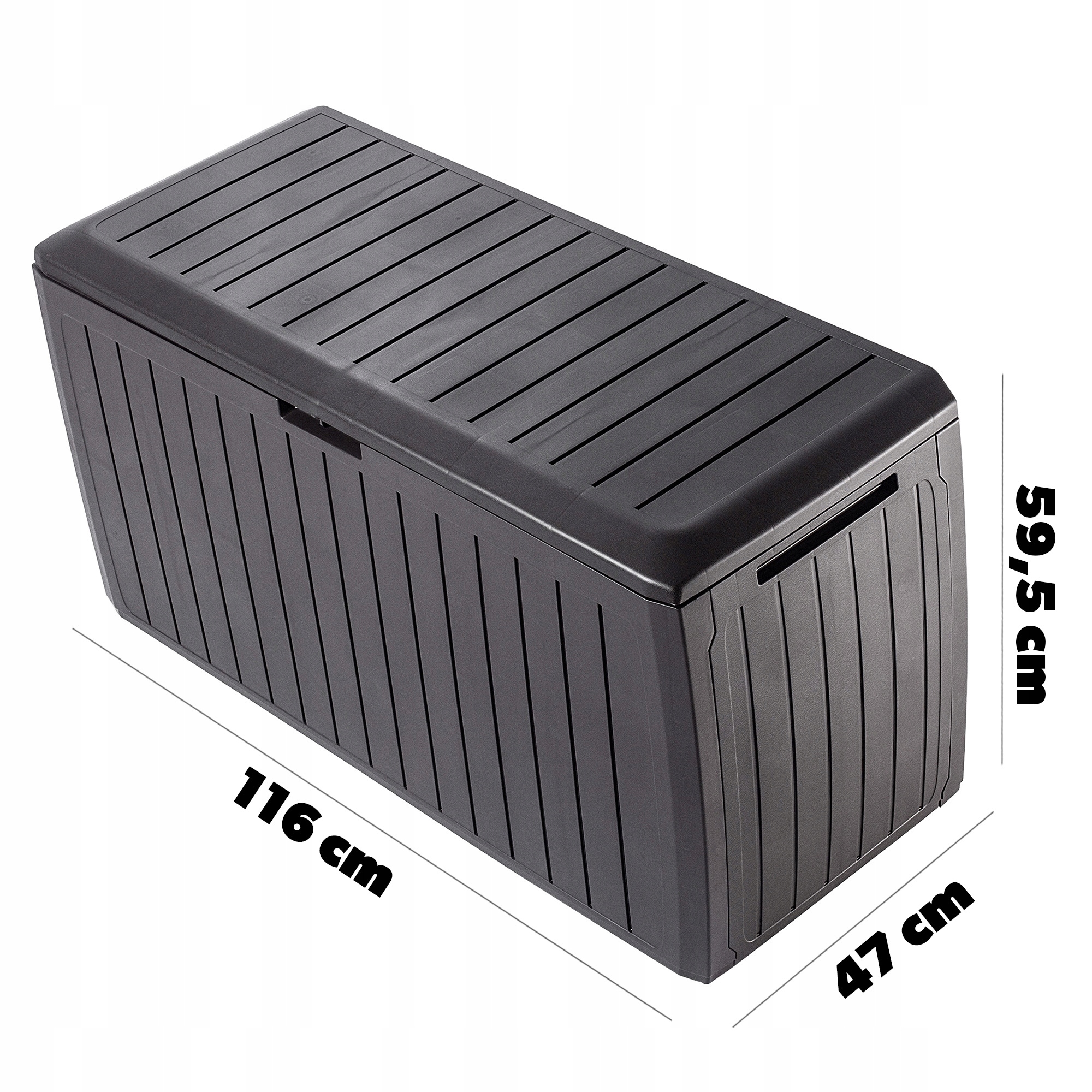 Каждый владелец балкона, террасы, сада или городского участка непременно оценит удобство, которое гарантирует садовый контейнер Amfisa. Благодаря внушительным размерам ровно 116 х 47 х 59,5 см и вместимости 290 литров в нем можно хранить любой инвентарь, связанный с времяпровождением на свежем воздухе.