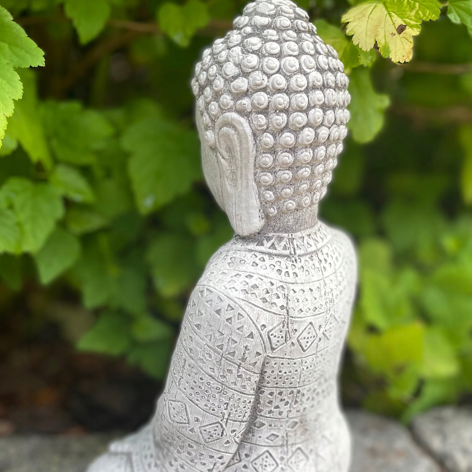 садовая скульптура с бетонным серым буддой