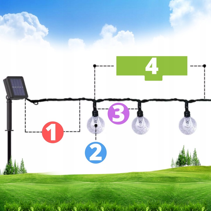 СОЛНЕЧНЫЕ САДОВЫЕ СВЕТОДИОДНЫЕ ЛАМПЫ 50 ЛАМПОК 7м