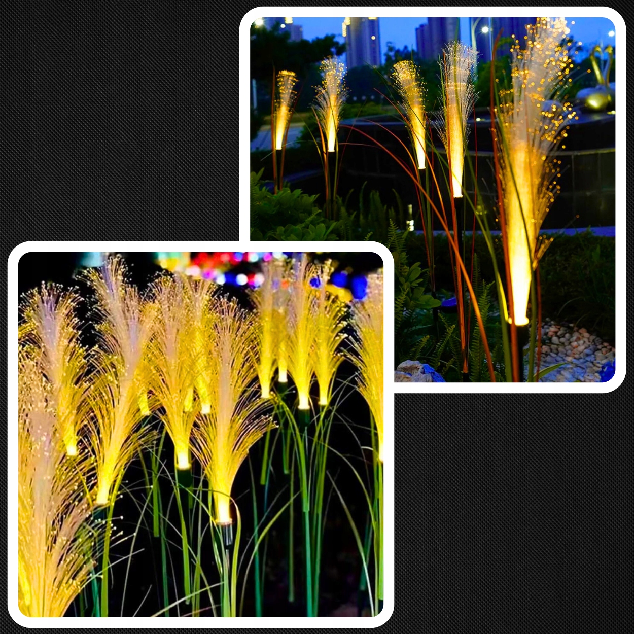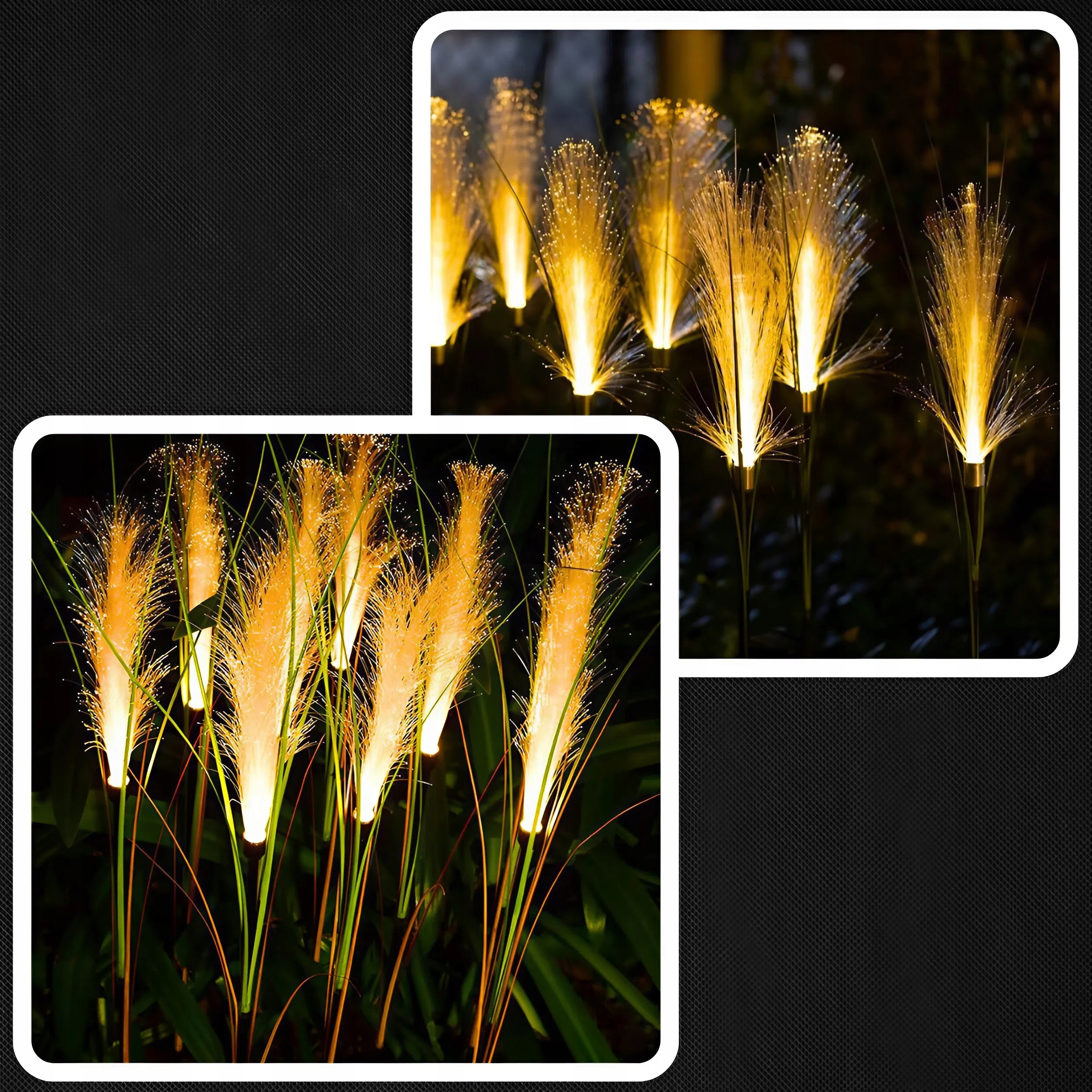 тонкие, светящиеся волокна, подражающие пампас -травяной волне на ветру, создавая тонкое, успокаивающее движение - как днем, так и после наступления темноты.