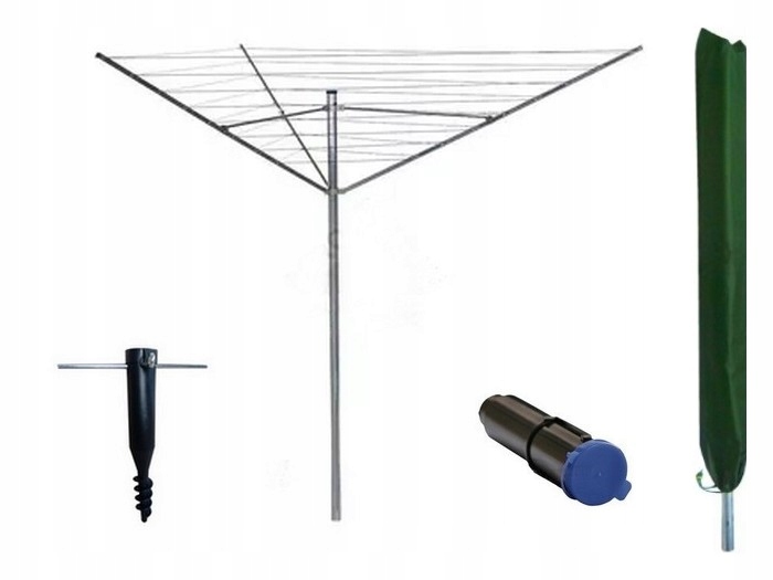 При покупке сушилки вы получаете 2 анкера для быстрой установки в грунт (для бетонирования или вкручивания) и защитный чехол