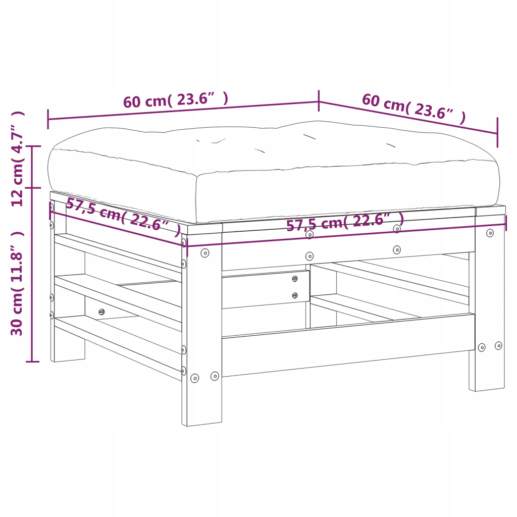 Садовый табурет для ног с подушкой, медово-коричневый, массив сосны