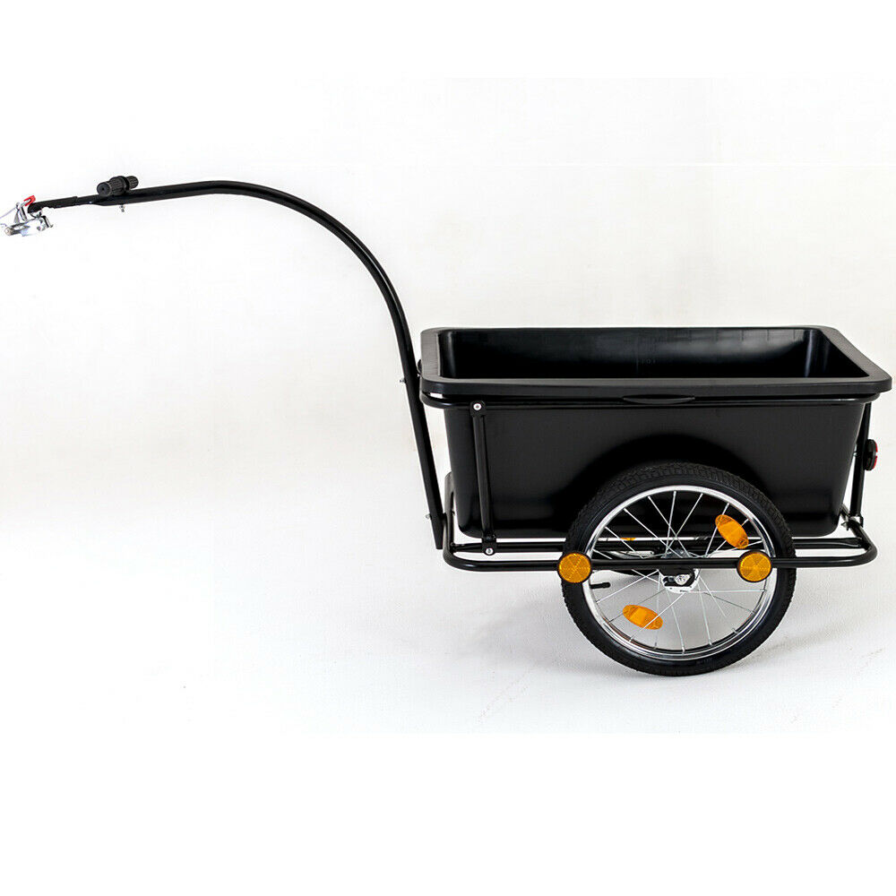 С нашим прицепом для велосипедов вы можете перевозить на своем велосипеде большие грузы. Он хорошо оборудован для перевозки покупок, садовых инструментов и мусора, а также для следующей поездки на велосипеде или в поход. Велосипедный прицеп перевозит грузы в прочном пластиковом баке.