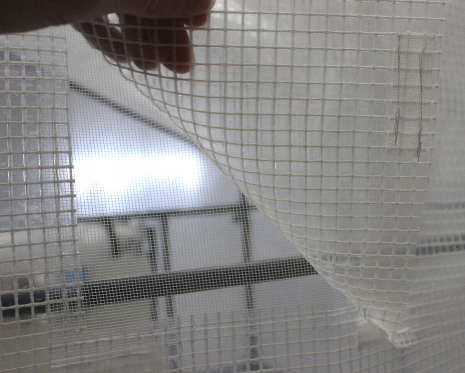 - сетка из фольги из прозрачного ПВХ пленка с интегрированными белыми мононитями - чрезвычайно прочная, очень стабильная и устойчивая к погодным условиям.