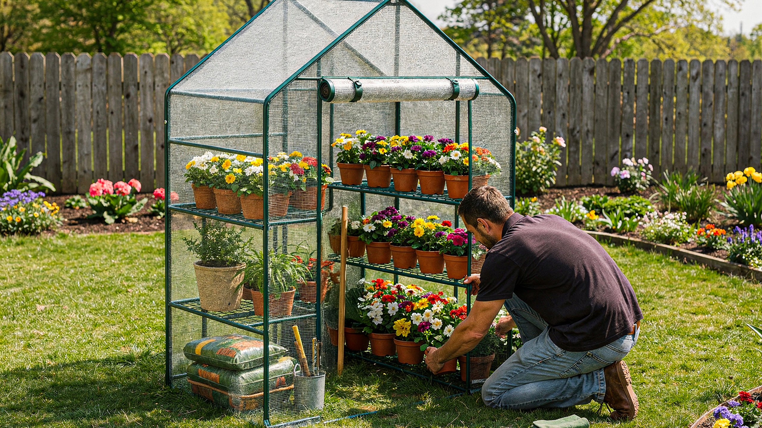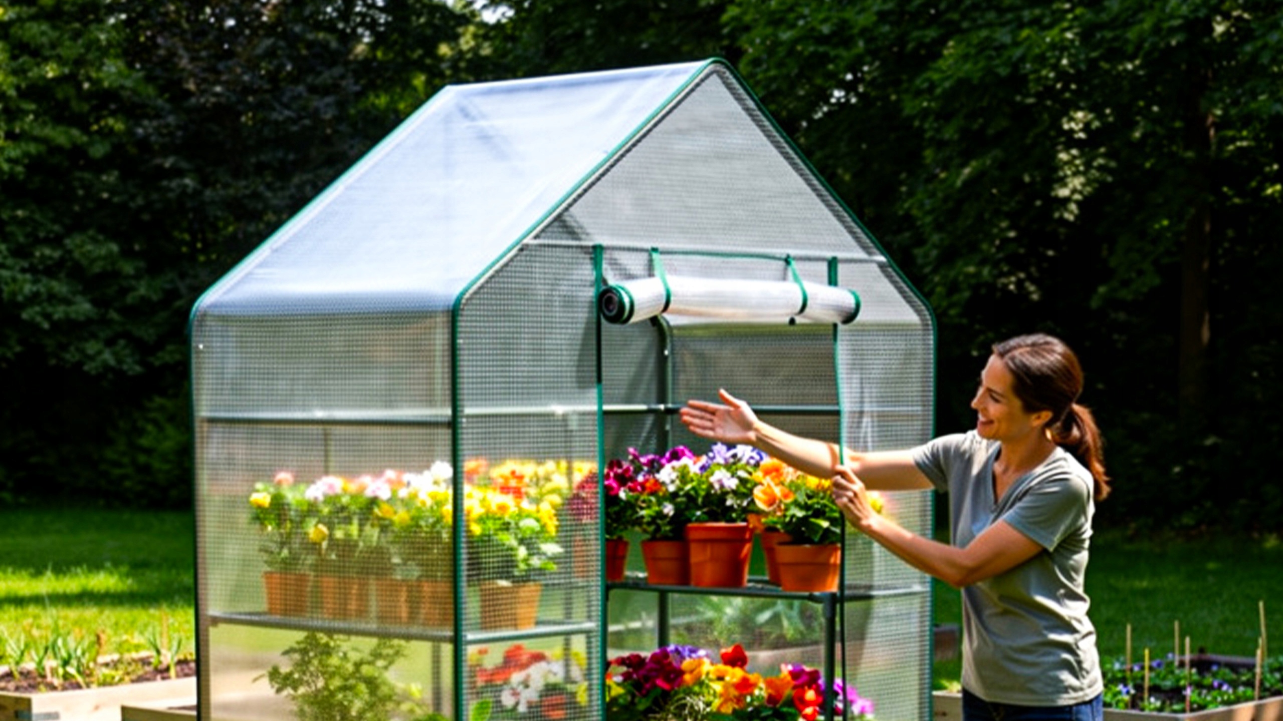 Благодаря своим компактным размерам теплица идеальна как для балкона, так и для сада. Позволяет выращивать растения даже на небольшом пространстве, сохраняя при этом функциональность полноразмерной конструкции.