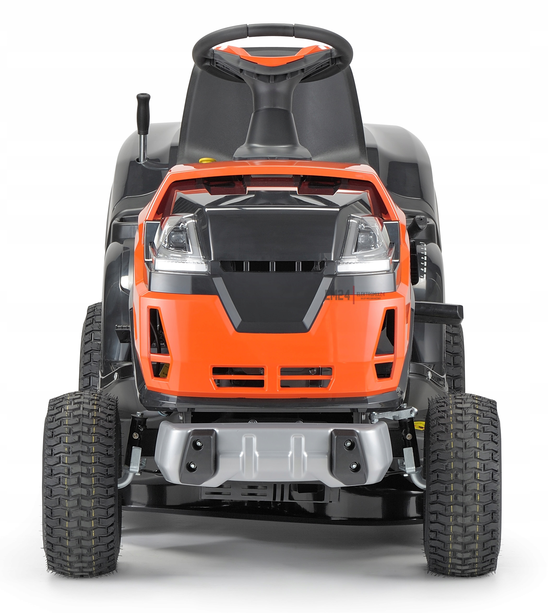 - Стальной бампер с широким передним высокой высокой длины, который защищает косилку в случае случайного воздействия.