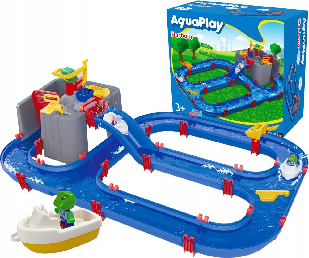 Благодаря простой системе сборки, станция может быть быстро отправлена и легко расширена с помощью дополнительных модулей Aquaplay (продается отдельно). Набор включает в себя лодки, адаптированные к трассе и очаровательные фигурки Nils - żabka и Wilma - Hippo, которые поощряют детей создавать свои собственные истории и играть в мире водных приключений.