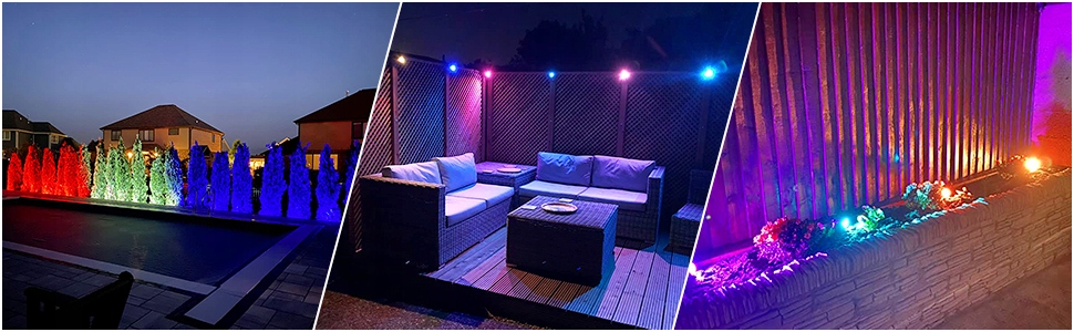 - 16 цветов и 8 режимов: Наш светодиодный ландшафтный светильник имеет 16 различных цветов и 4 режима. Цвет каждого источника света можно установить индивидуально, имеется 4 динамических эффекта (вспышка/стробоскоп/затухание/плавный).