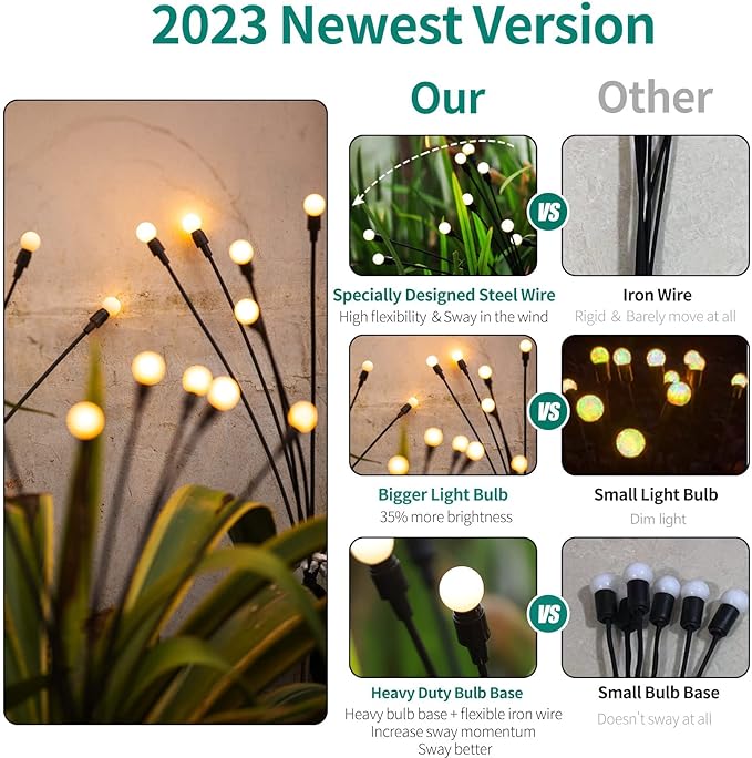 Идеальное украшение сада и праздничный подарок: эти солнечные садовые фонари могут принести прекрасный свет, чтобы создать романтическую и праздничную атмосферу, идеальное наружное украшение для дворов, дворов, лужаек и дорожек, а также для любых случаев, таких как Рождество, свадьбы, Новый год, вечеринки. и т. д. Уличные фонари на солнечных батареях также станут прекрасным подарком на День матери, День святого Валентина, юбилеи и дни рождения.