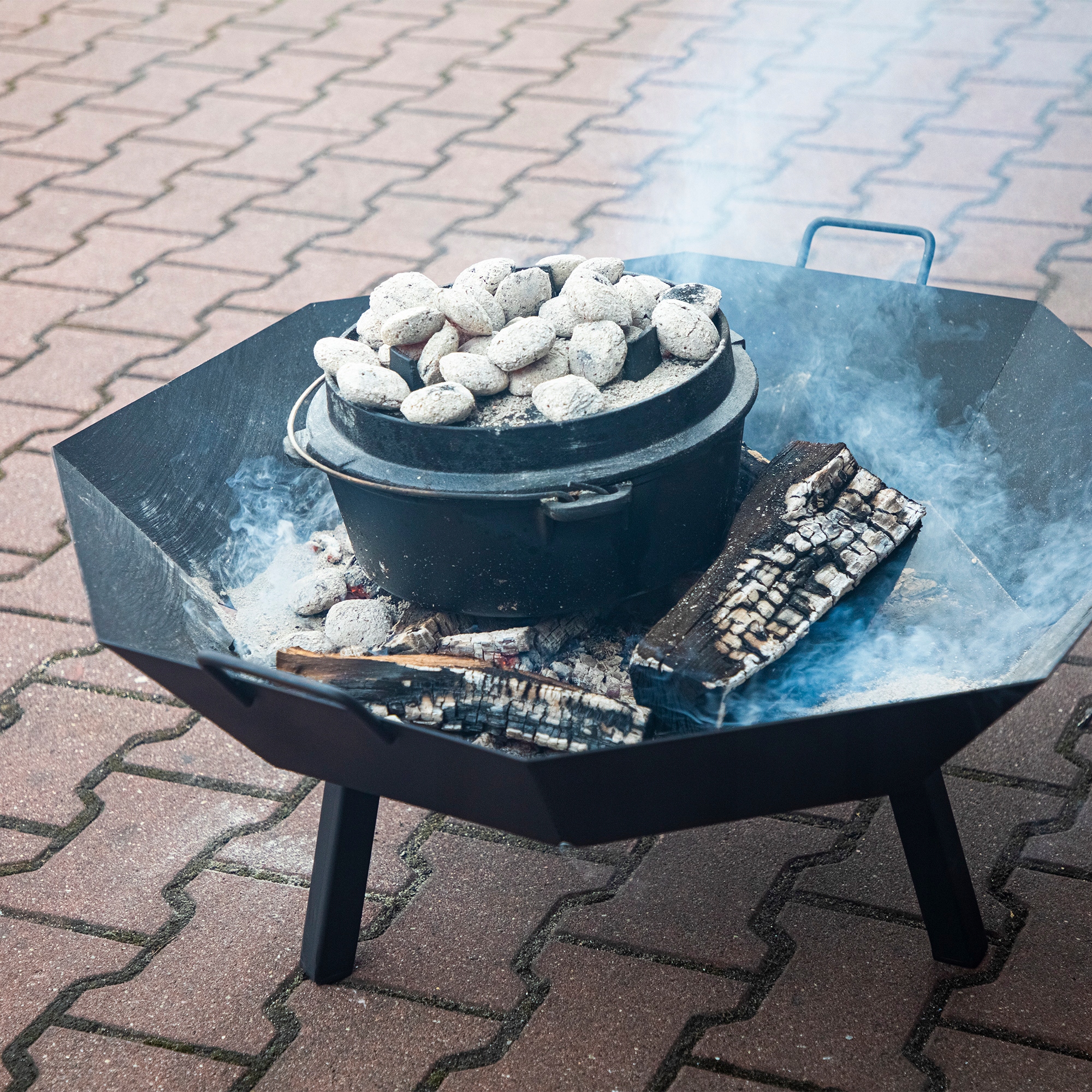 - Стильный, современный дизайн, высококачественный - очаг имеет интересную восьмиугольную форму, толстую прочную 2 -мм сталь и черную матовую отделку в виде тепло -устойчивой краски (до 800oc). На открытом воздухе. Огненная продукция
