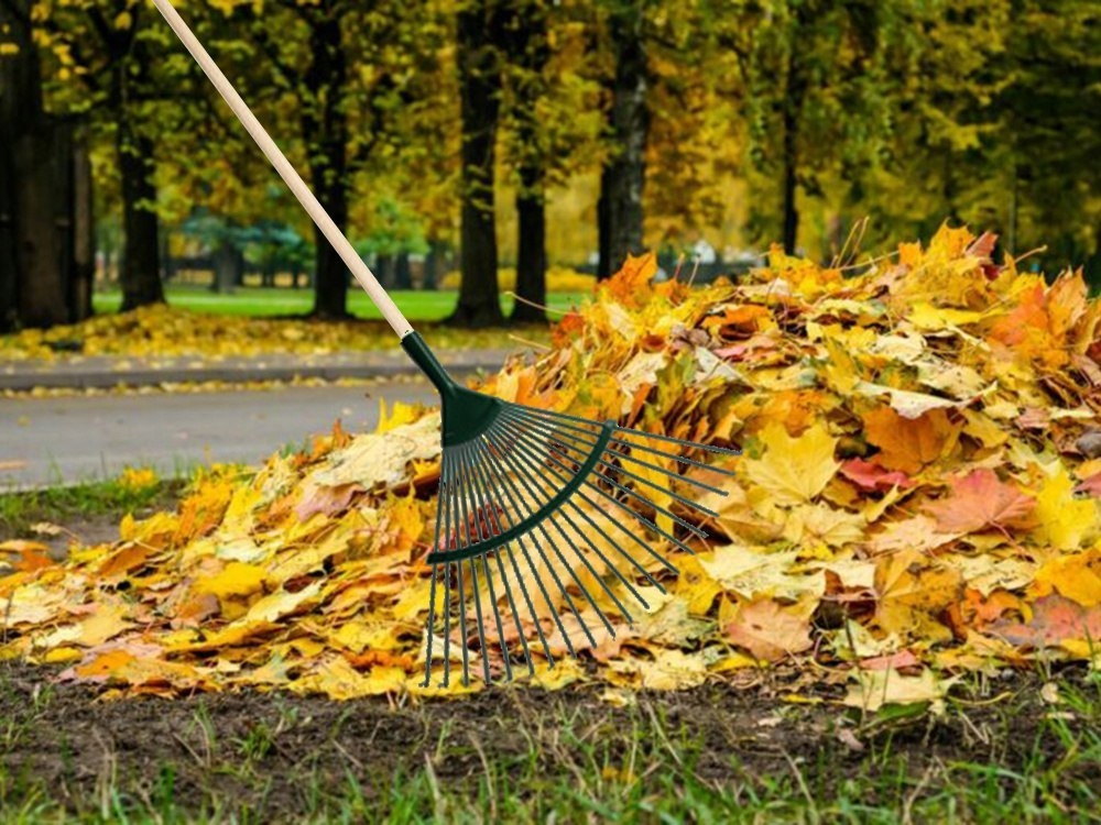Практические металлические грабли для сбора листьев в саду и коллекции коликов из хвойных деревьев, конусов и многих других ненужных зеленых отходов