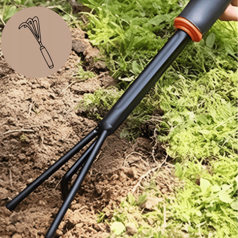 Трезубец - это универсальный инструмент , который облегчает выполнение и растяжение корней . Прочная структура нержавеющей стали обеспечивает длительный срок службы инструмента, а эргономическая ручка облегчает маневрирование