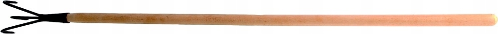 Традиционно изготовлен из трех стальных и профилированных зубьев, заточенных в рабочей части. Предназначен для рыхления почвы без вреда для корней. Предназначен для легких садовых работ. Обрамлена типичной деревянной ручкой. Рабочая часть защищена черным лаковым покрытием.