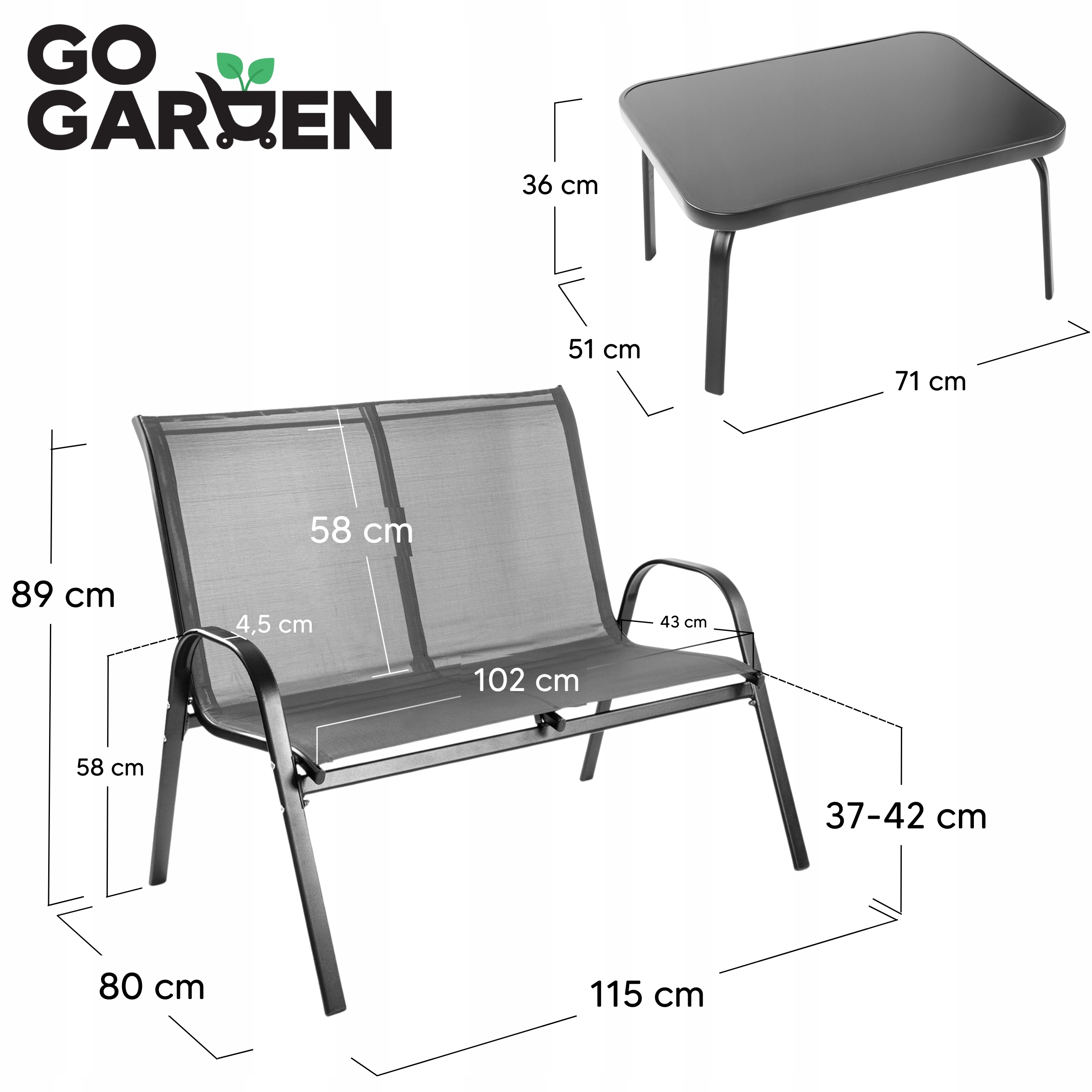 ☘ набор таблицы садовой мебели + диван + 2 серые металлические стулья h1>