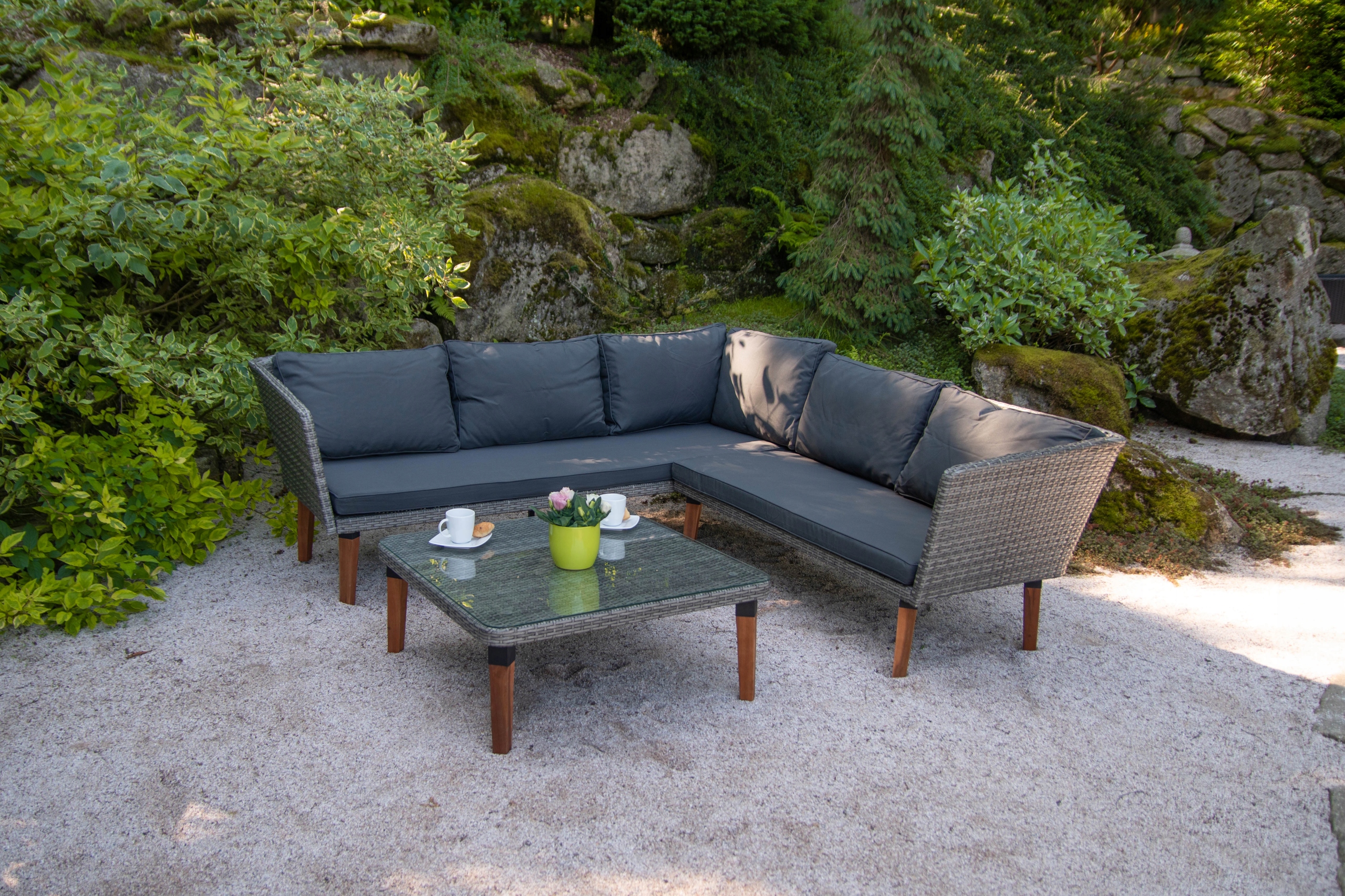 Садові меблі, куточок, сірий журнальний столик