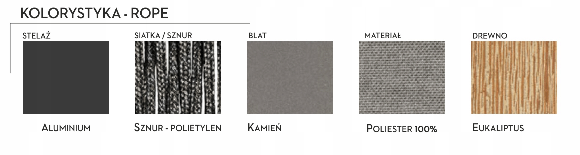 - каркас - каркас из твердой эвкалиптовой древесины с элементами из нержавеющей стали. Спина и руки обтянуты веревкой (полипропиленовой водонепроницаемой веревкой)