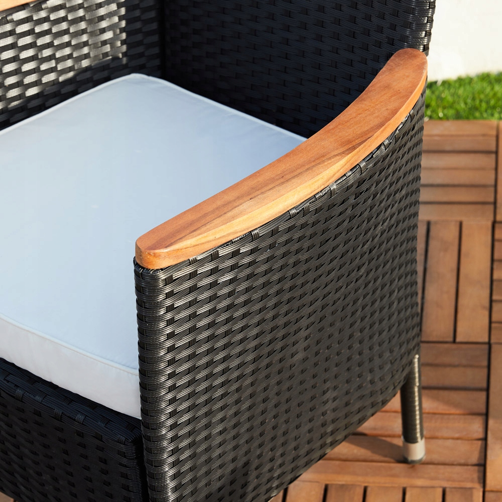 Удобные садовые кресла с подлокотниками из акации и сиденьем высотой 50 см обеспечивают максимальный комфорт сидения.