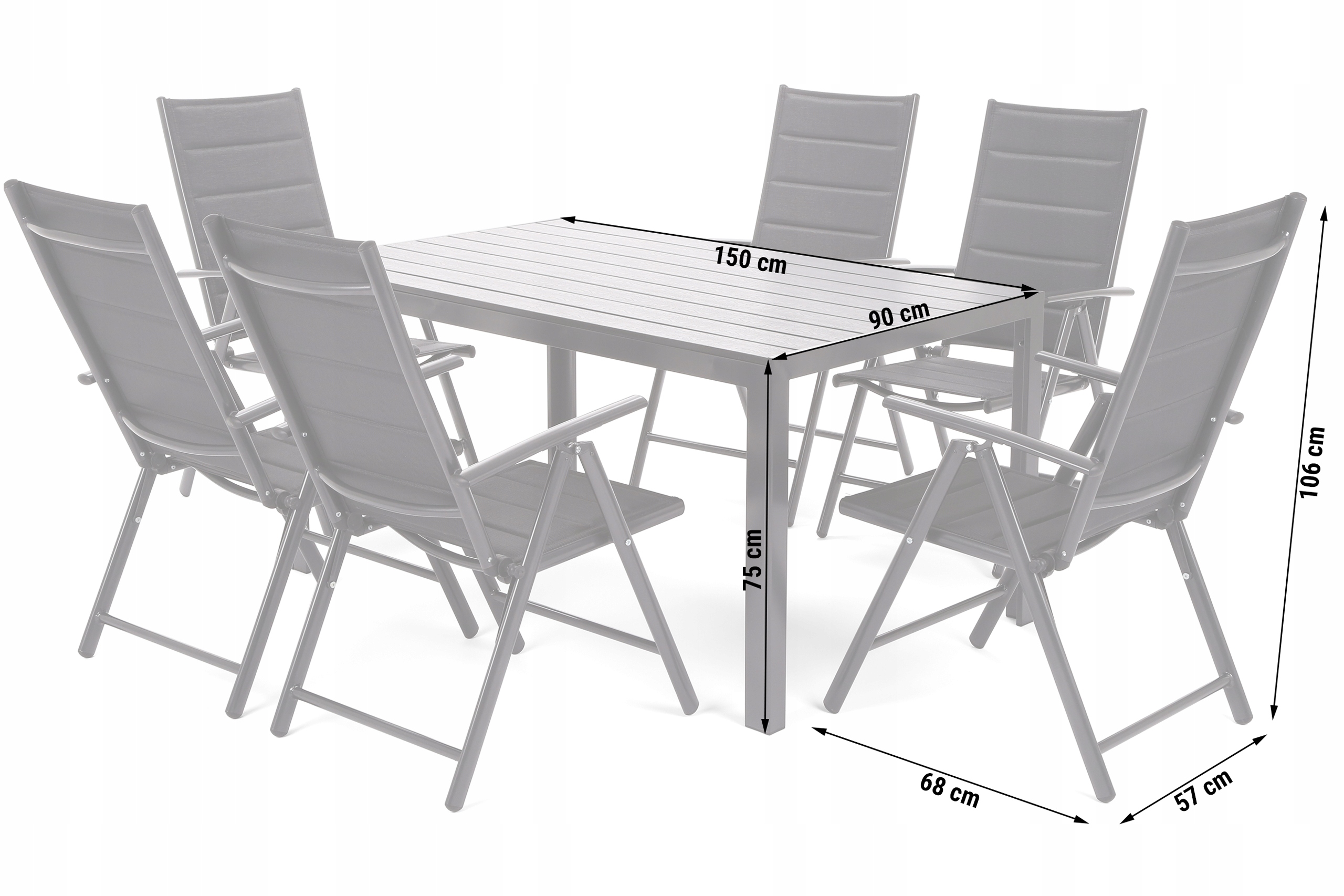 Конструкция стола и стулья высококачественные алюминиевые, окрашенные методом порошка. В предлагаемом наборе столешница изготовлена из составных композитных плат WPC, используемых, среди прочего, для производства современных систем и фасадов террасы. Наиболее важным структурным элементом таблицы являются 4 алюминиевые профили в форме буквы U. Их использование означает, что после сборки вся таблица чрезвычайно стабильна! Это решение позволило получить свободное пространство под таблицей и избегать ненужных дополнительных конструкций, мешающих удобному использованию мебели.