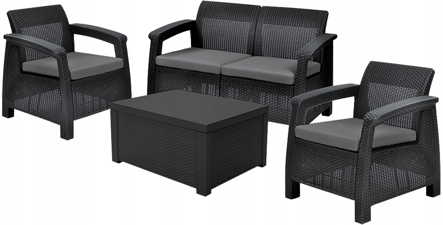 Комплект садовой мебели CORFU BOX со структурой, имитирующей техноротанг графитового цвета, с подушками в комплекте.