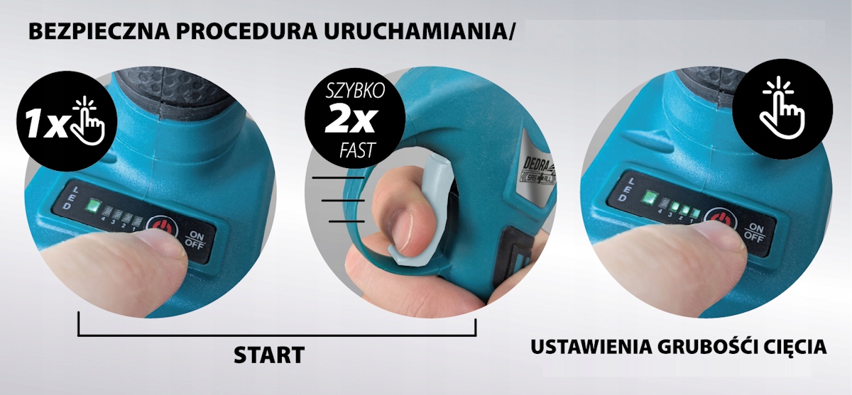 Секатор DEDRA DED7177 питается от 1 батареи DEDRA SAS+ALL.