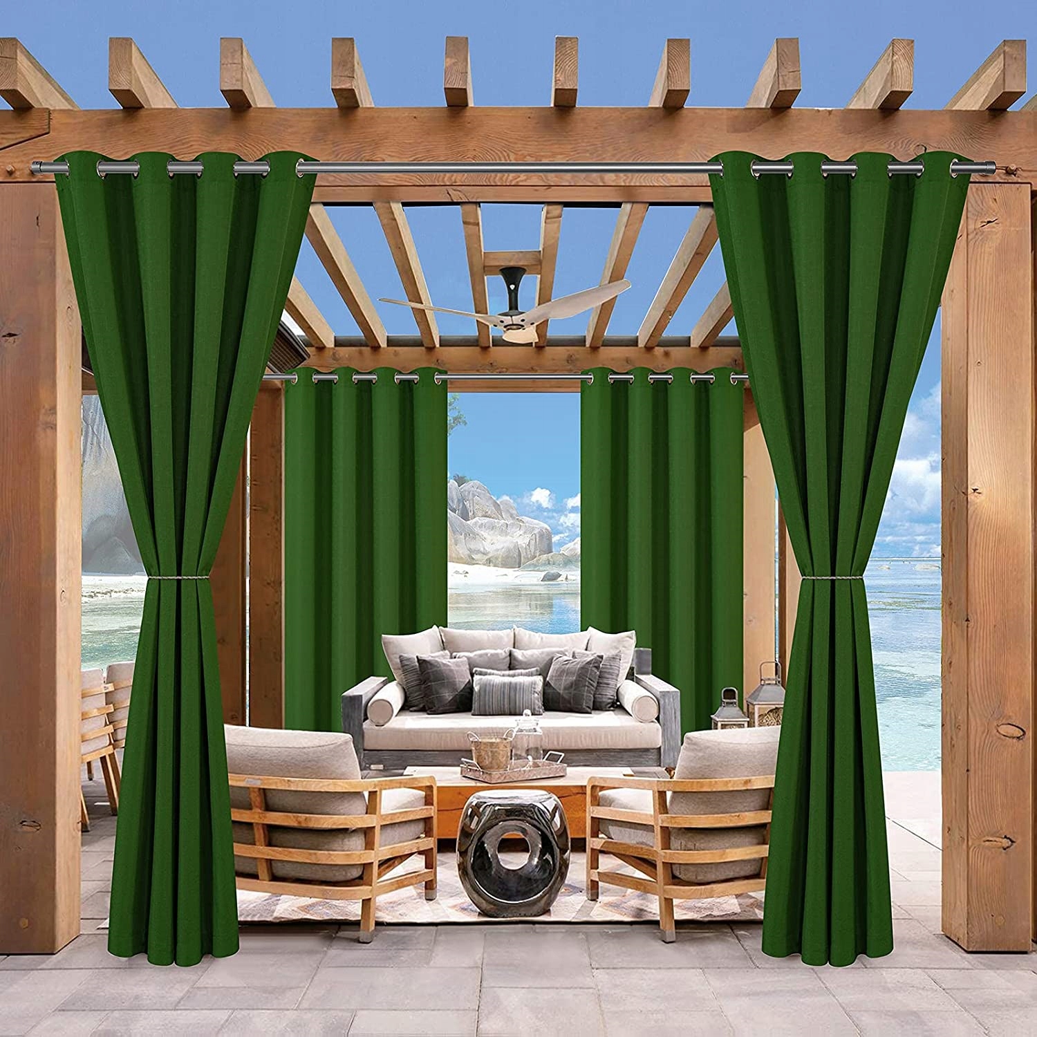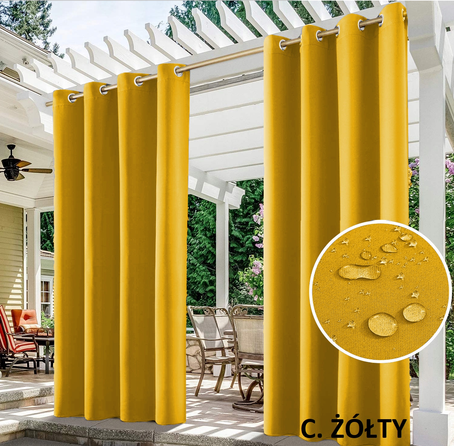 Готовая штора с металлическими люверсами - прочная и устойчивая к погодным условиям.