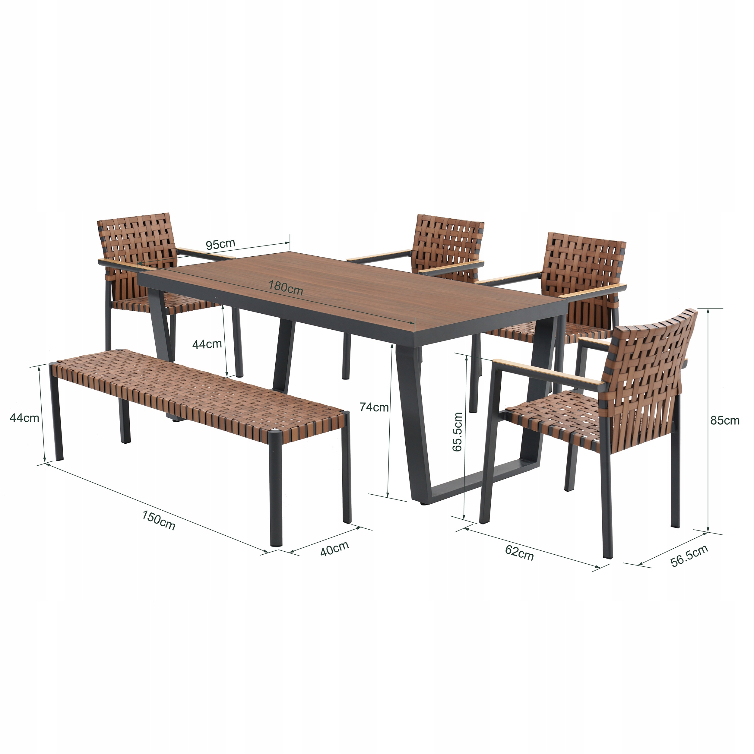 - обеденный комплект для сада с большим столом, 4 стульями и скамейкой, идеально подходит для встречи в больших группах
