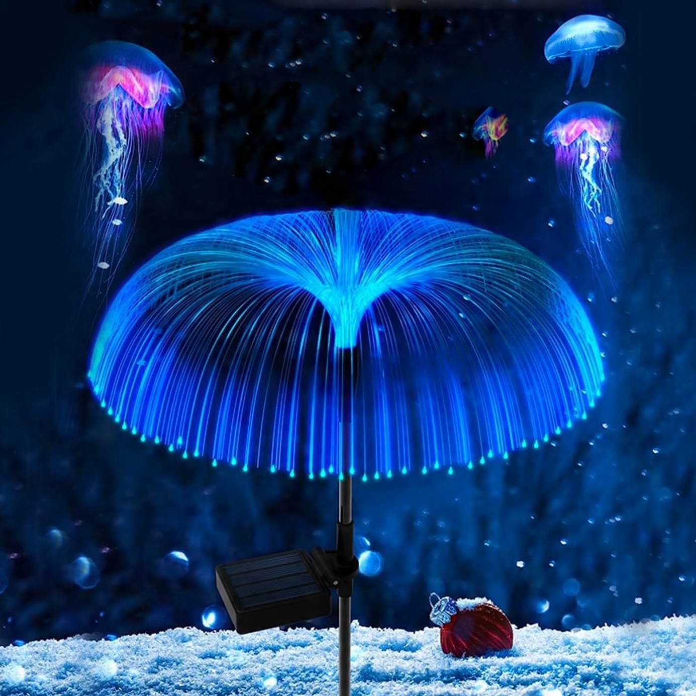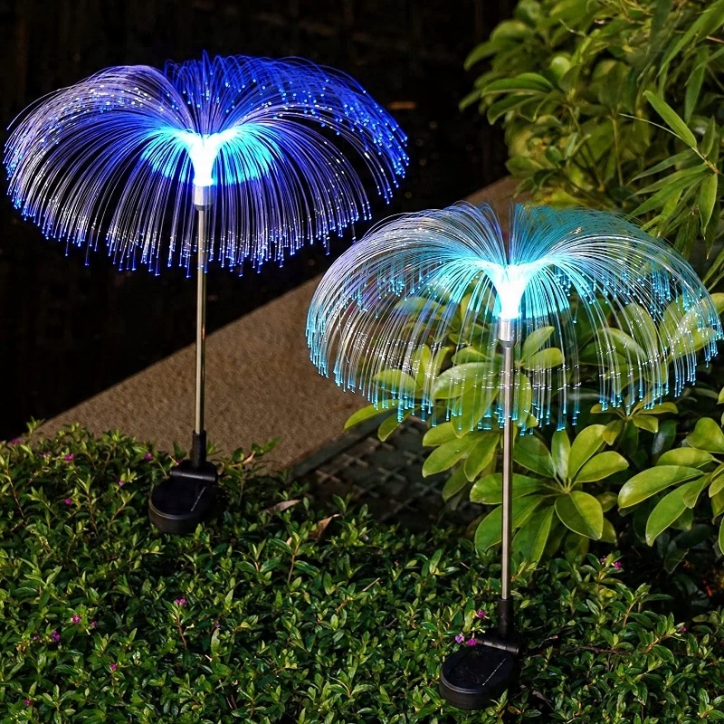 Садовые солнечные лампы медузы, встроенная оптоволоконная садовая солнечная лампа