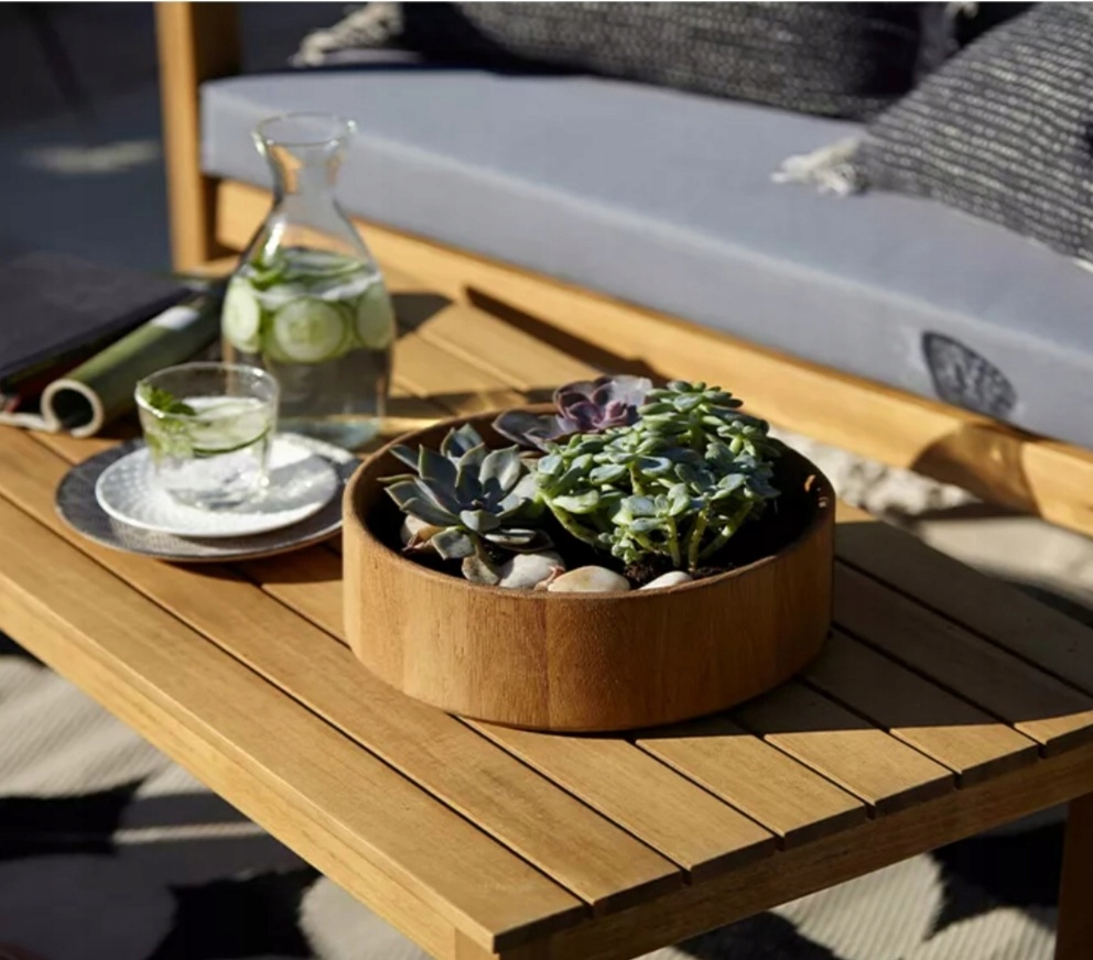 Готовый комплект деревянной террасной мебели из древесины акации Дения – эффектное обустройство вашего садового участка.