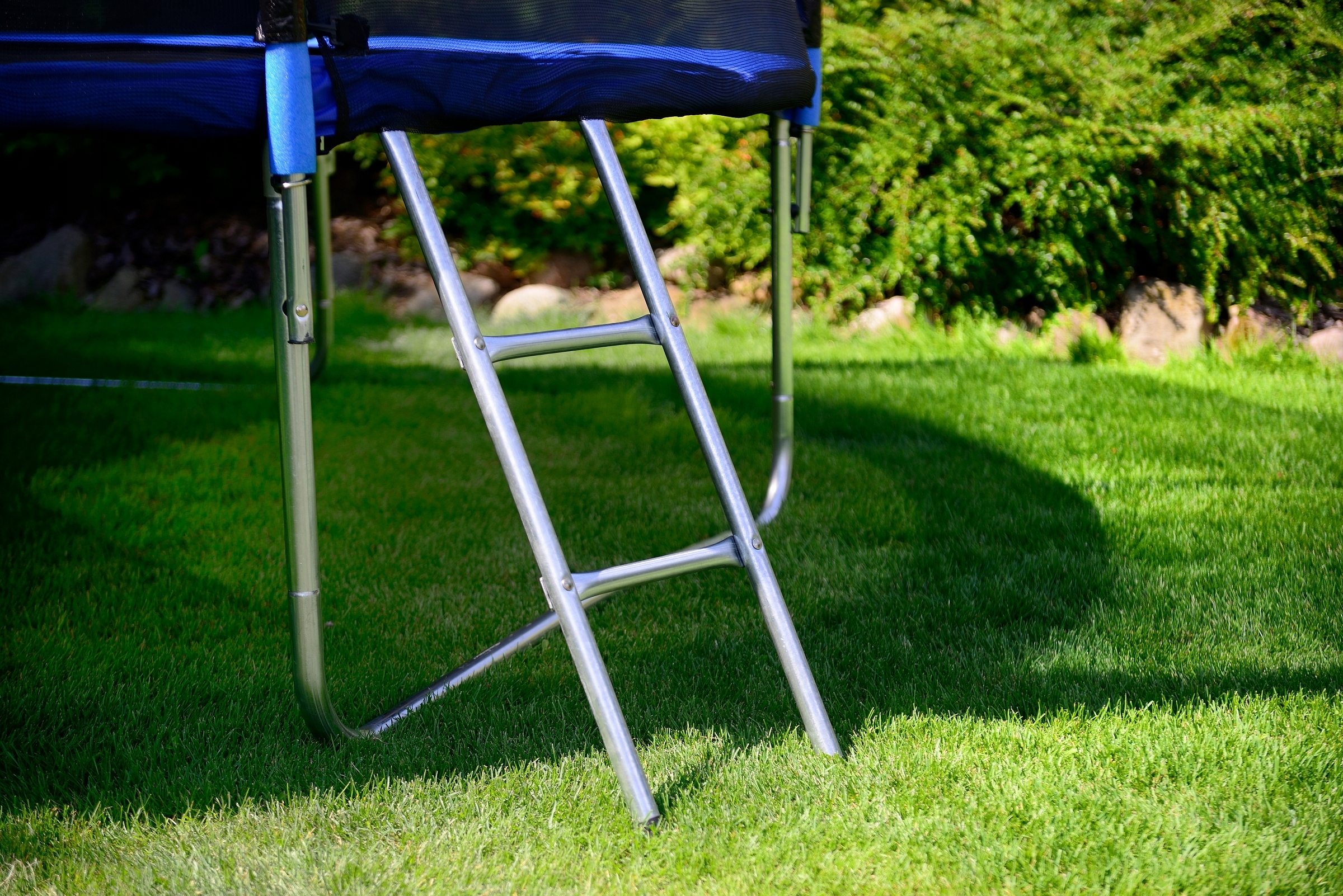 - Оцинкованная лестница БЕСПЛАТНО: Лестница для облегчения использования батута, входящего в комплект.