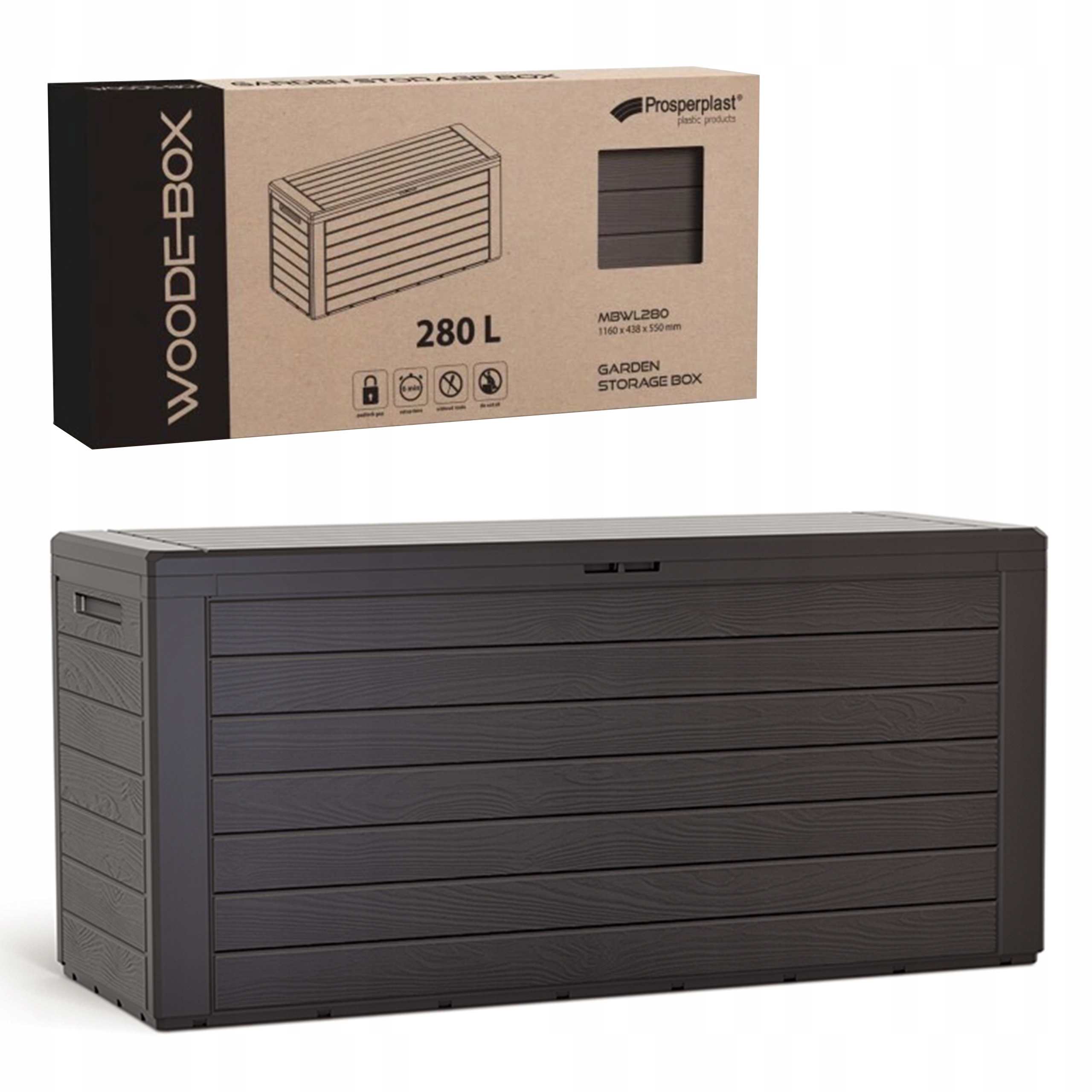 Вместительный садовый ящик Woodebox MBWL280-440U от Prosperplast – практичное и эстетичное решение для хранения различных видов садового инвентаря, спортивного инвентаря и детских игрушек. Он изготовлен из высококачественного пластика, что делает его прочным и устойчивым к погодным условиям. Коробка легко собирается и не требует специальных инструментов. Благодаря своим размерам его можно использовать в качестве сиденья или стола на террасе.