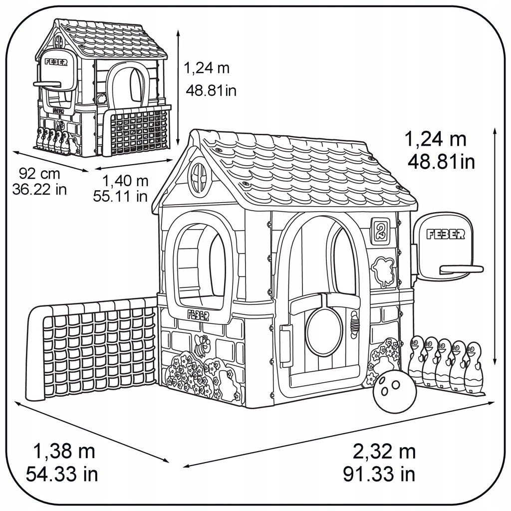 Многофункциональный домик для занятий FEBER 6-в-1 с набором игр — первый игровой домик с 6 играми благодаря чему ваш ребенок не будет знать, что такое скука! В комплект входят такие игры, как: боулинг, игры с ракетками, футбол, баскетбол (с регулируемой корзиной), мишень для мяча на липучке. После игры все можно сложить и не будет беспорядка! Дом прочный, очень легко собирается. Кроме того, он оснащен системой защиты от ультрафиолета, которая защищает цвет от выцветания. Предназначено для детей старше 3 лет.