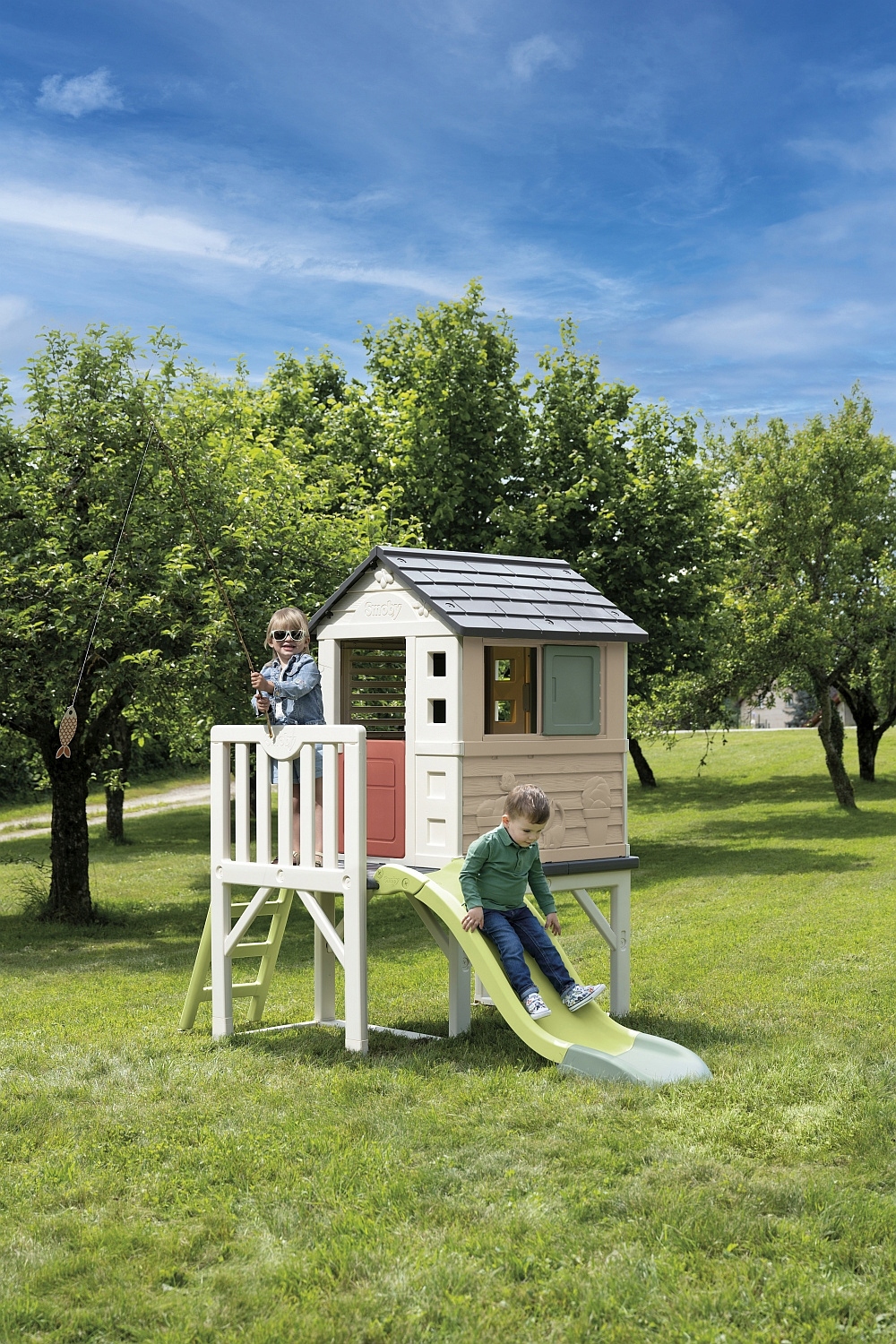 благодаря размещению дома на ходулях, поиграть и выйти на слайд бесконечна!