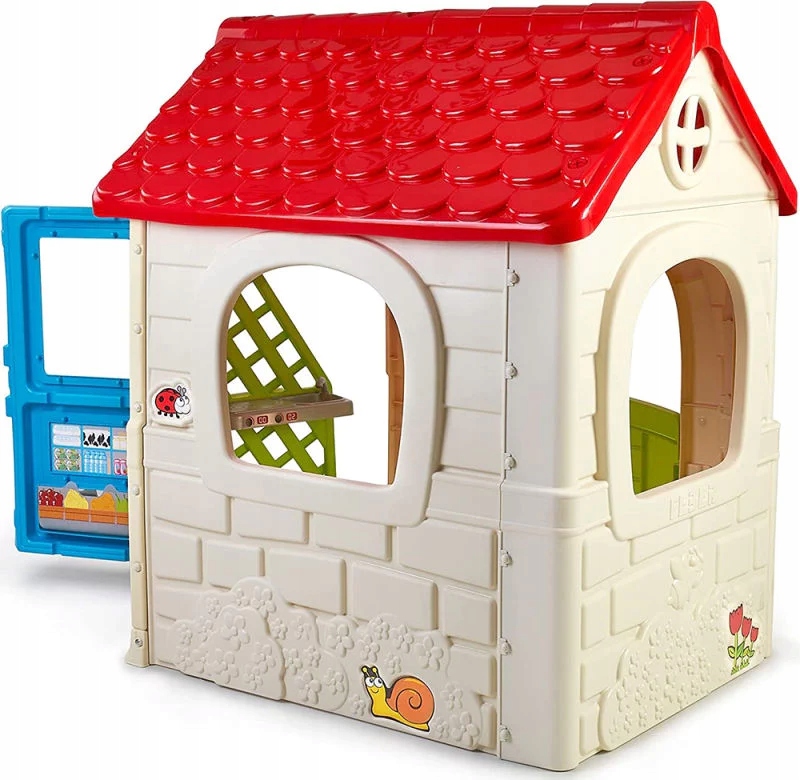 Многофункциональный дом легко может превратиться в кухню, гриль, школу, торговый автомат и даже супермаркет. Множество красочных элементов, выполненных из качественного материала с большой точностью и вниманием к деталям, позволят вашему малышу разыграть сценки из повседневной жизни. Подражать взрослым – самое веселое! Изделие легко собирается и имеет специальное анти-УФ-покрытие, благодаря которому оно не выцветает и будет выглядеть элегантно долгое время независимо от погодных условий.